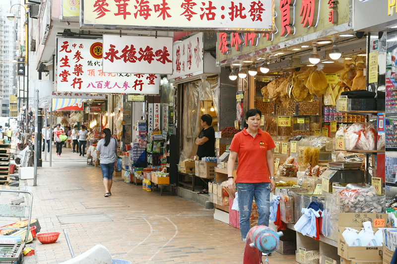 ▲西環的海味店因遊行示威影響生意。記者 馮瀚文攝