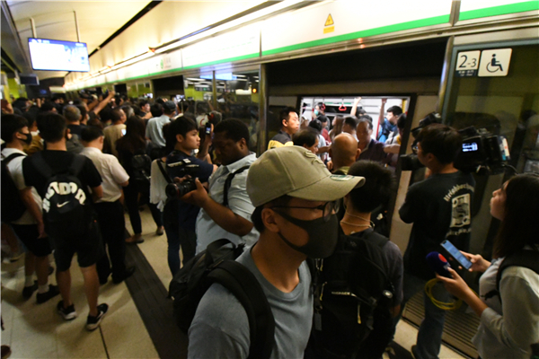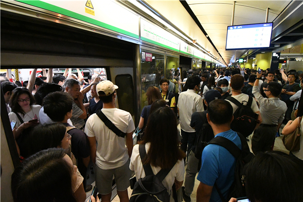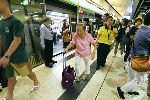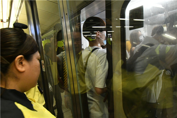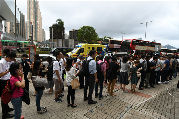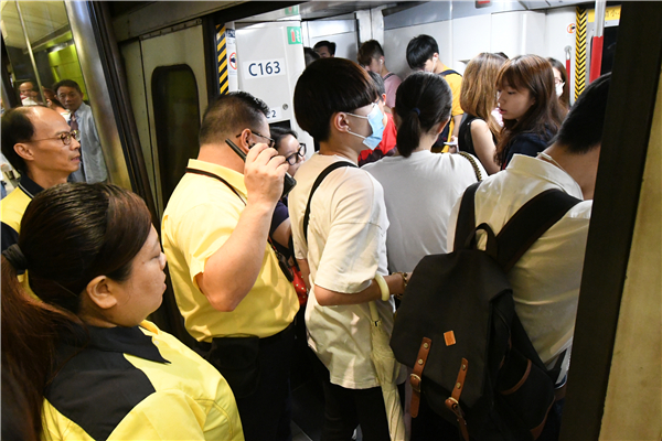 列車一度停止服務,車上乘客被迫下車轉其他交通工具。记者 冯瀚文 摄