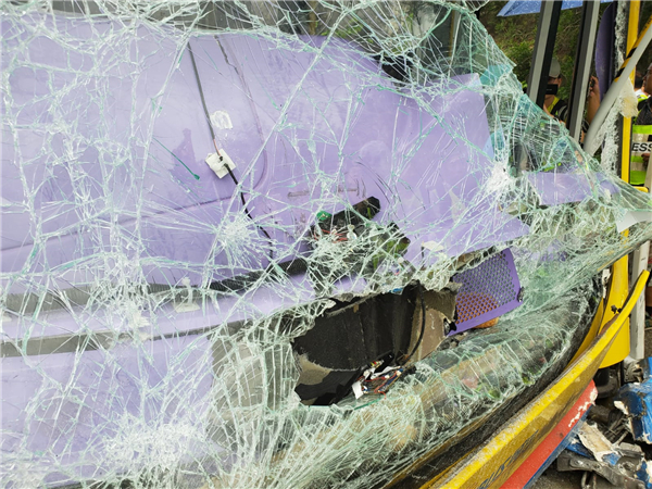 車禍中77名乘客受傷,據知有巴士司機一度被困車內,消防員到場營救。據了解,一名巴士乘客一度被困車內。其間,消防員爆開城巴上層玻璃拯救,其間將一名乘客救出。涉事的城巴撞至車頭嚴重損毀,車頭擋風玻璃碎裂及變形。