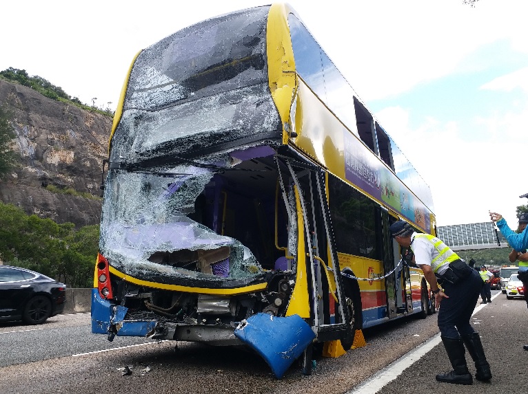 昨早8時許,一輛由天水圍開往金鐘的967號線城巴,沿大欖隧道出口往九龍方向的青朗公路行駛至近汀九橋時,突然與前方一輛九巴相撞。由於兩車上乘客大部分入睡,猝不及防下,紛紛撞向前面椅背,有人失平衡跌落走廊,骨折受傷;有人血流滿面,失聲高呼,車廂內一片混亂。