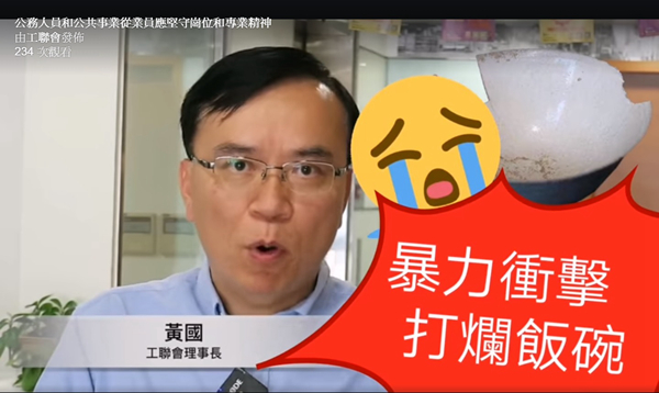工聯會理事長黃國在短片中指出,近期的暴力衝擊行動打爛打工仔飯碗。