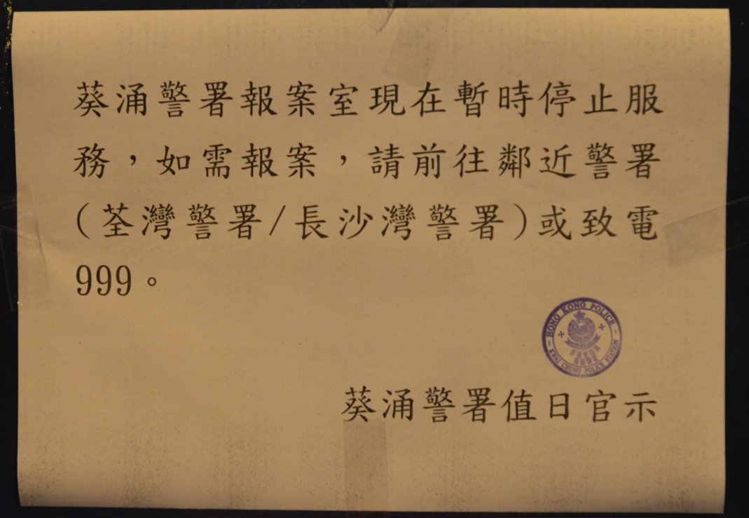30日晚上8时许,有激进分子试图从侧门冲进葵涌警署,但被警员阻止。因此,警署只能拉闸,警員在門外貼出告示,指葵涌警署報案室暫時停止服務,報案人士要到附近報案室。