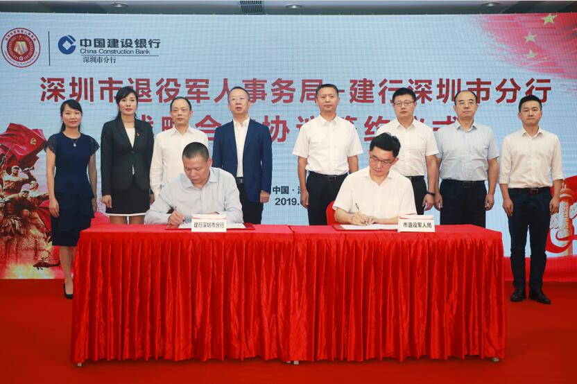 深圳市退役軍人事務局聯合中國建設銀行深圳市分行舉行了戰略合作協議簽約