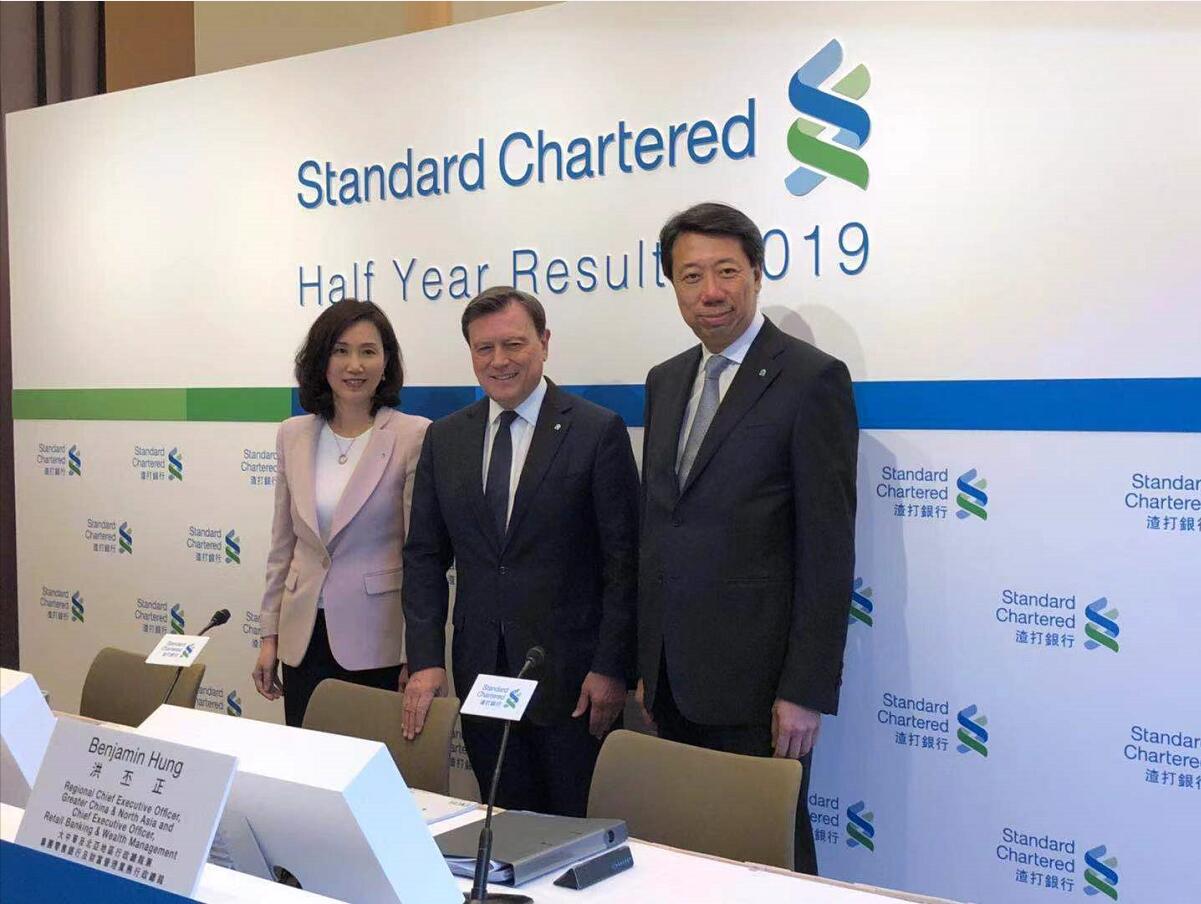【香港商報网訊】記者張智榮報道:渣打集團(2888)主席韋浩思(圖中)出席中期業績發布會時表示,集團10億元(美元,下同)回購計劃至今已完成四分之三,預計最快第四季前完成整個回購計劃。