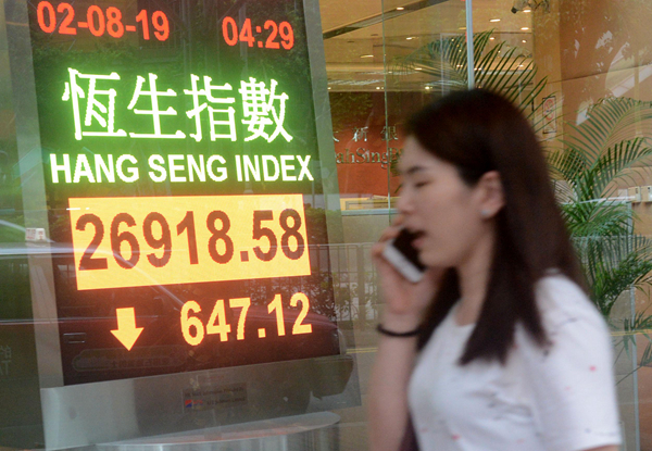 特朗普再向中國商品加徵關稅,震動金融市場,港股急挫647點,收報26918點。中通社