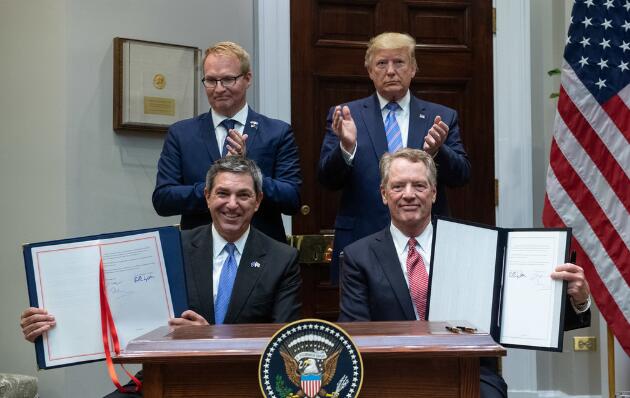 8月2日,白宫罗斯福厅,美欧双方签署“牛肉协议”。