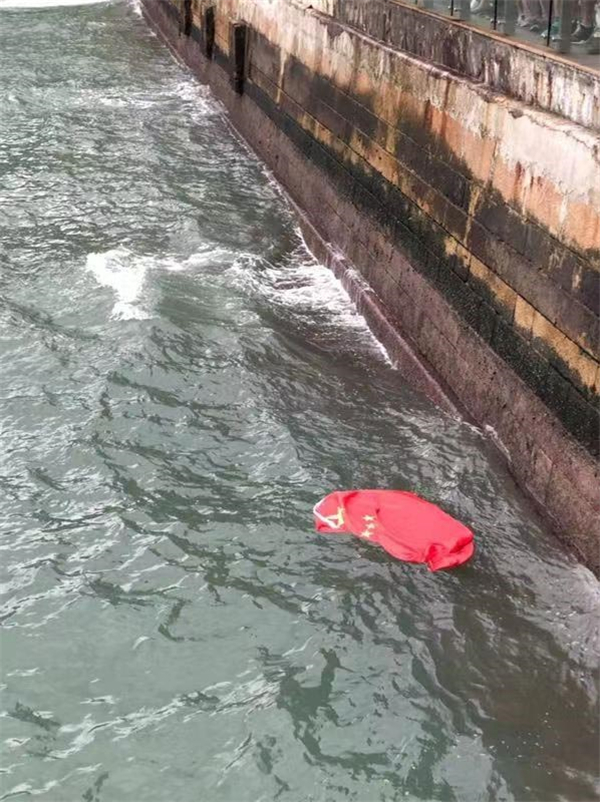 看哭!被香港暴徒丢海的国旗,被爱国者重新升起!