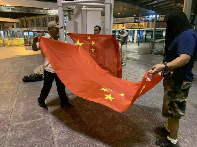 【香港商報网訊】記者戴合聲報道:昨日有小撮黑衣及蒙面激進示威者竟然當眾破壞尖沙咀碼頭五支旗杆,將國旗降下及投擲海中。多個政黨及各界人士強烈譴責丟棄國旗的行為是「無法無天」,行為已超出國家底線,令人髮指,促請執法部門盡快將違法者緝拿歸案。8月4日凌晨0時30分,香港海港城前,十余名愛國愛港人士來到旗桿前,將一面嶄新的五星紅旗緩緩升起!