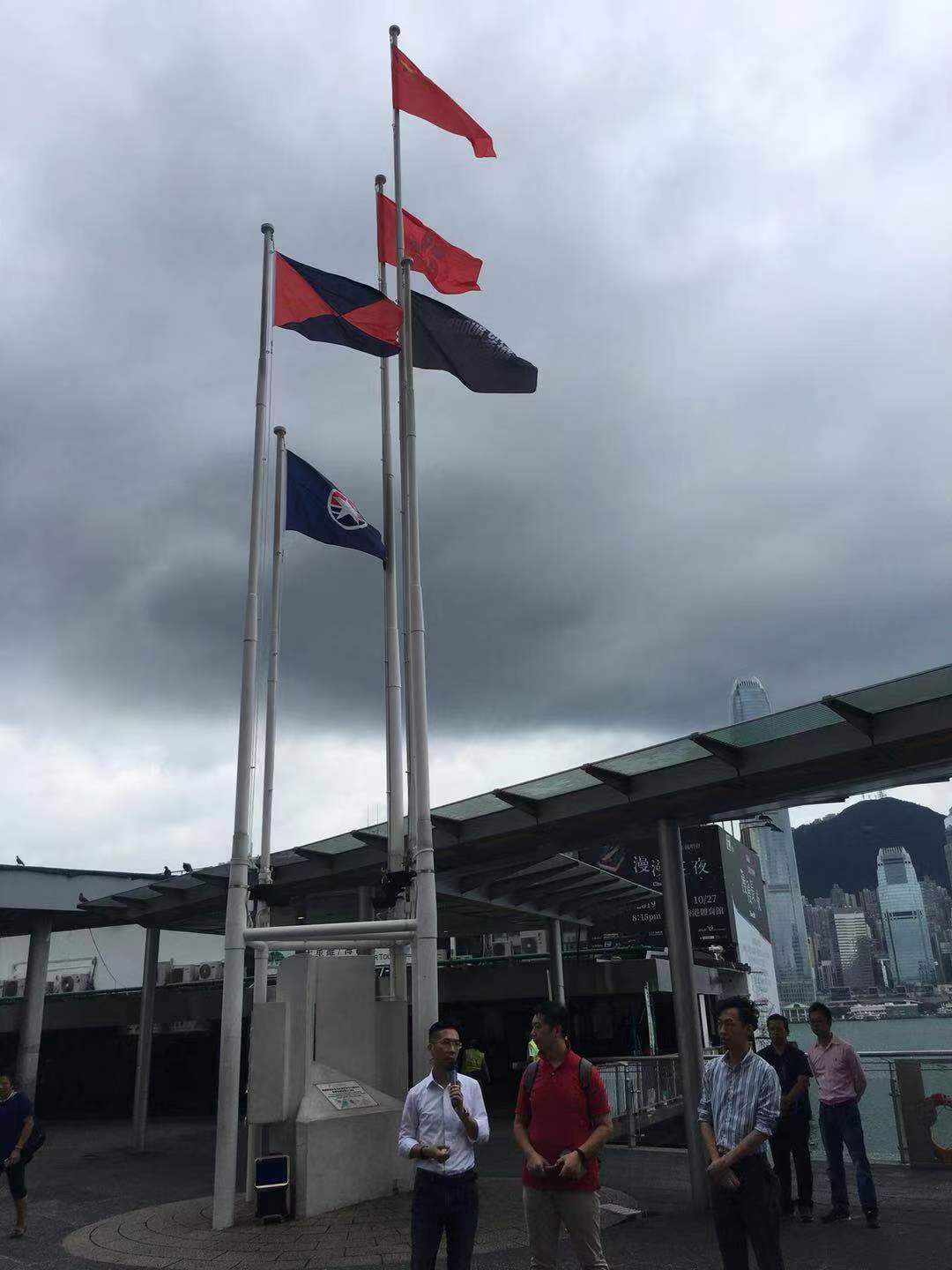 十余名爱国爱港人士来到旗杆前,将一面崭新的五星红旗缓缓升起!