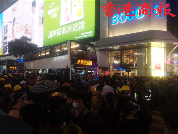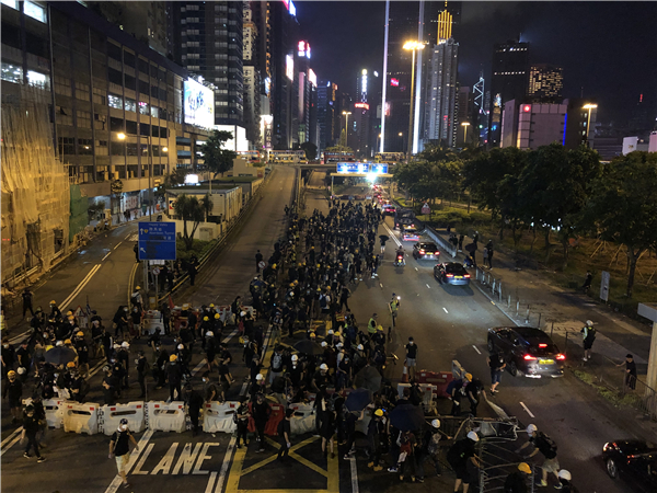 有部份示威者到達銅鑼灣崇光百貨門外,設置路障佔領馬路,多輛車受阻要調頭。有示威者則分別走到灣仔,亦有人佔領告士打道,其後紅隧港島出口全封。