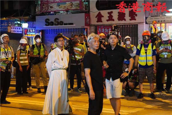 【20:44】在西區德輔道中清場過程中,泛民議員許智峯和梁耀忠多次走到警方防線前,阻止警方繼續推進。