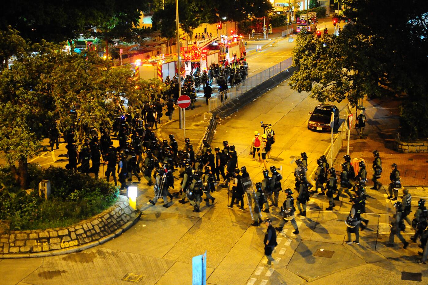 黃大仙半夜爆發警民衝突,一批示威者包圍黃大仙紀律部隊宿舍,一批防暴警察到場戒備。 記者 何家驊攝