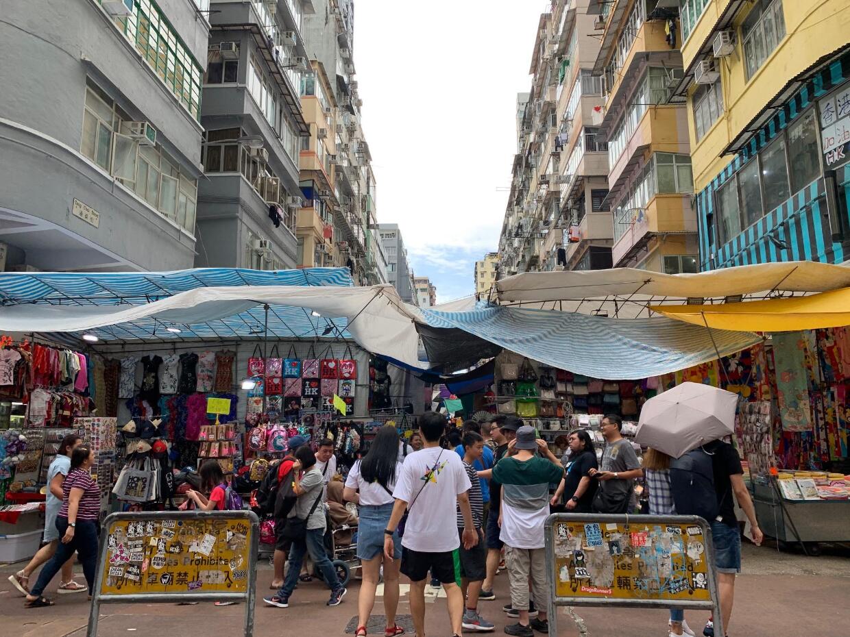 為避開上周六的旺角遊行,旺角彌敦道一帶的商店前日紛紛落閘,提早關門避險。其中女人街全日沒有排檔開檔,連旅遊發展局也罕有地發出通知。「女人街變了死街」,場面十分冷清。衝擊過後,女人街昨日已回復正常,不少排檔恢復營業,許多外來旅客及市民如常到場購物觀光。
