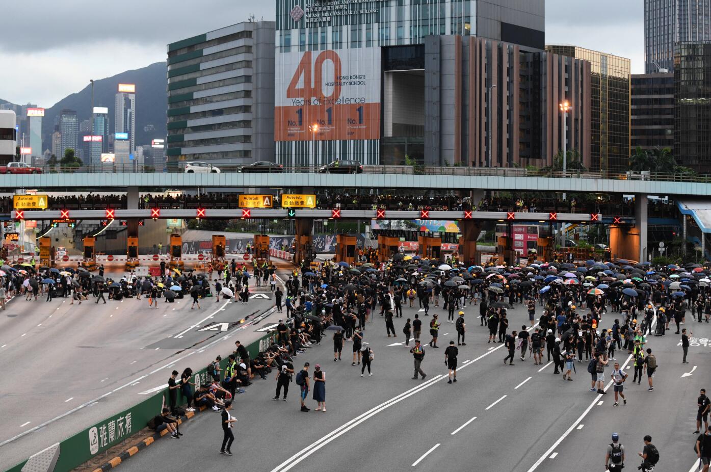示威活動涉及的違法及堵路行為變本加厲,前日更兩度堵塞紅磡隧道,政府呼籲市民切勿參與堵路等違法 行為。