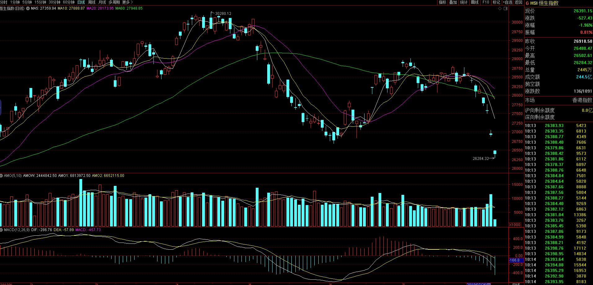 受消息影响,恒指开盘大跌,蓝筹股全线下跌,跌幅一度超过2%,截至发稿时跌1.74%,蓝筹股全线下跌。A股市场也是大幅低开,上海股市低开1%,不过,之后开始回升,截至发稿已接近红盘。