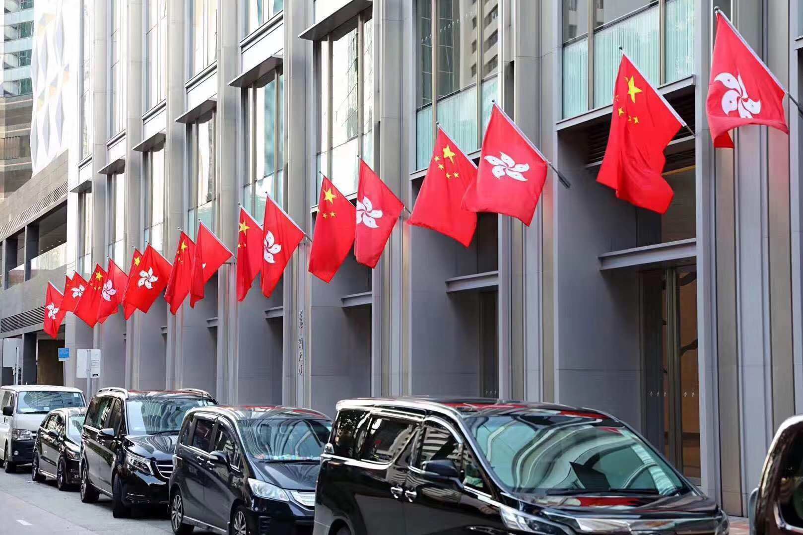 在本港,許多市民對示威者侮辱國旗的行為表達不滿,同時用實際行動作出回應。除了有網友在周日於海港城自發重新升起國旗之外,不少商家在外墻上高高掛起國旗以及區旗,表達對國家主權的尊重。今日,培僑中學的師生就特別組織一場升旗禮。