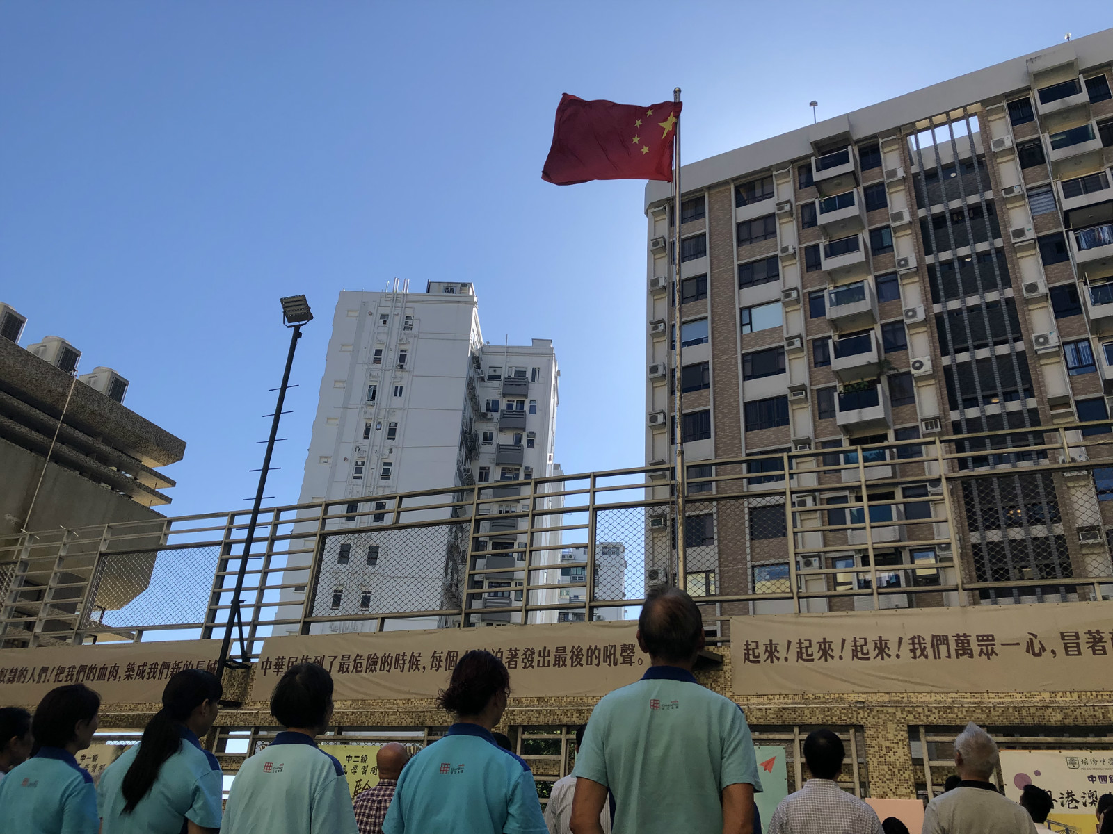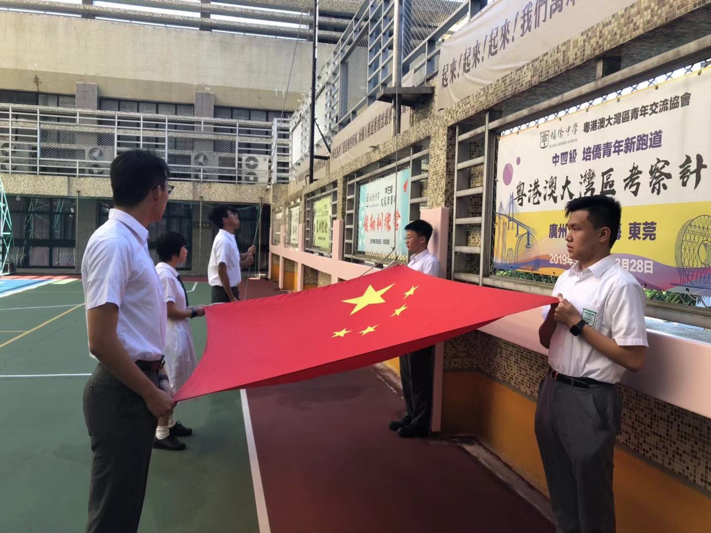 校長伍煥杰就表示,同學和老師對有人侮辱國旗的行為感到憤慨,於是今日學校升旗隊的同學以及部分老師和校工回到學校,特別舉辦一場升旗禮,以表達對於國旗,以及國家的尊重。參與升旗禮的程同學表示,對於有人侮辱國旗的行為感到好心痛,她指出,國旗代表國家的尊嚴,香港是中國的一部分,市民無論表達什麼意見也好,都不應當做出有損國家尊嚴的事情,同時,她對於有激進示威者做出連串暴力行為感到憤慨,認為社會應該和平理性表達意見。