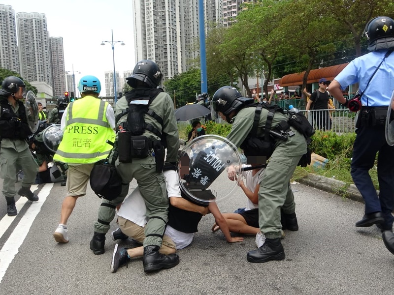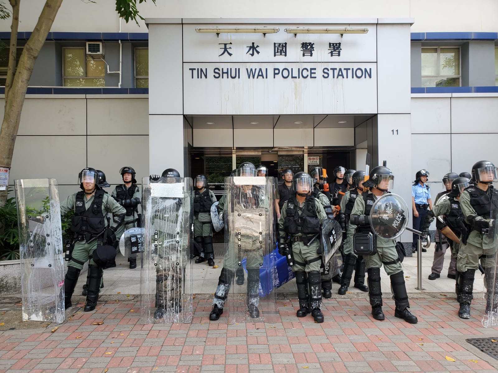 反修例行動昨日演變成包圍行動,示威者包圍觀塘、將軍澳、黃大仙、天水圍四區警署。其中警方凌晨在天水圍警署外制服多名示威者,當中有一名穿長裙的女示威者被數名警員合力抬入警署時,導致「走光」,露出內褲,惹網民炮轟,認為是公然羞辱女性。