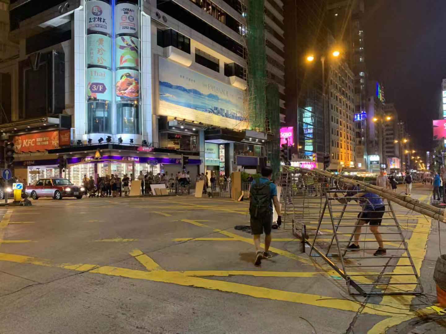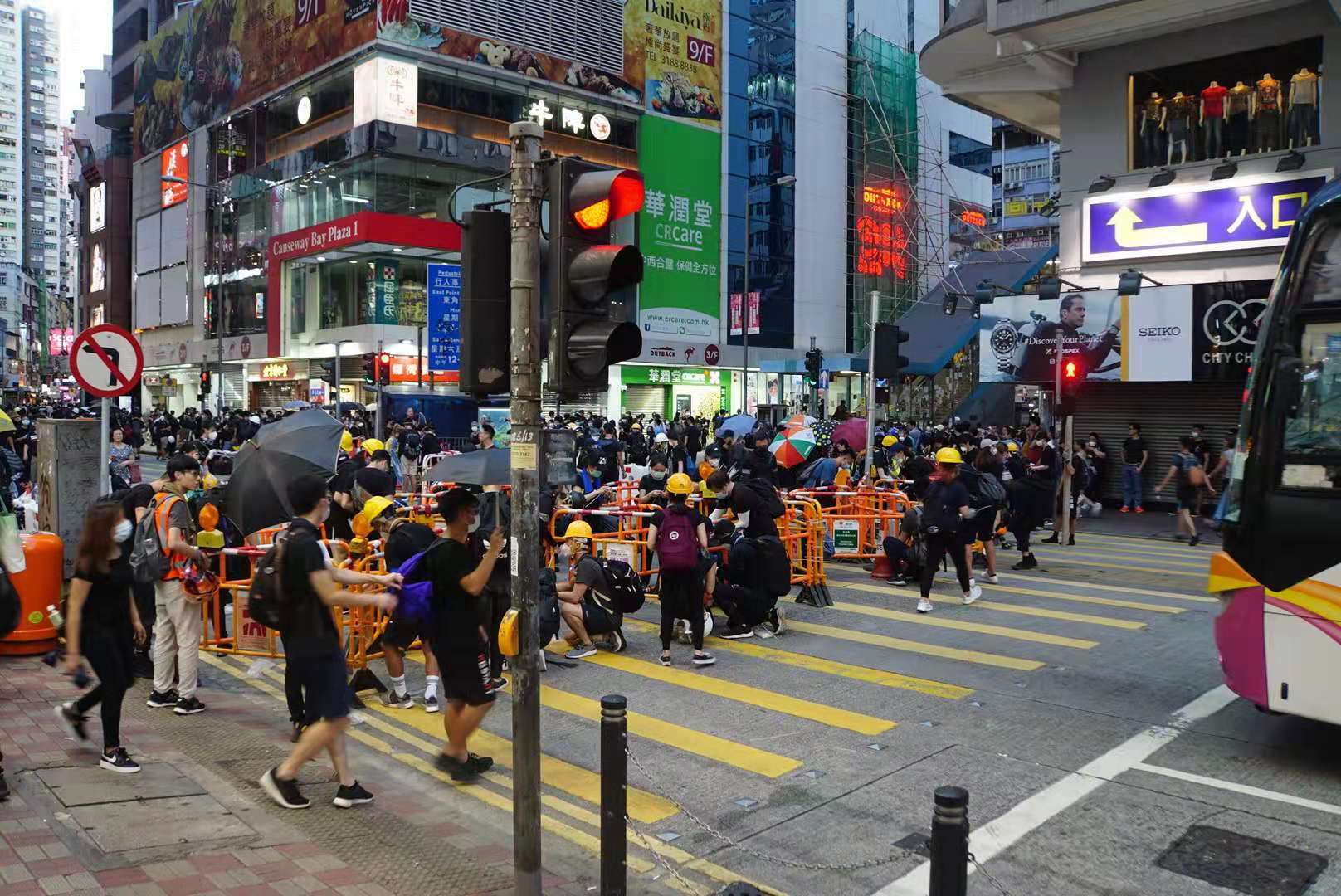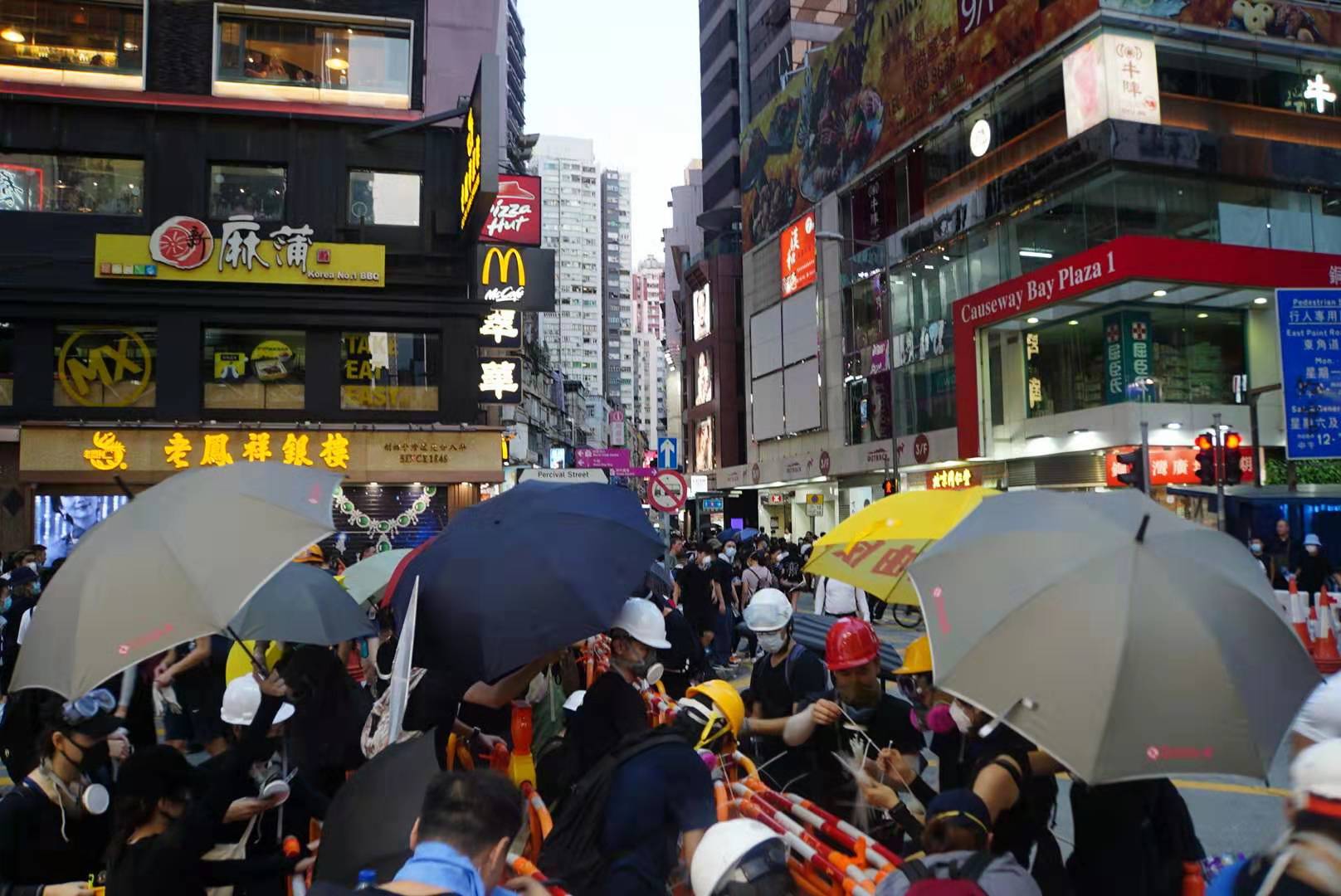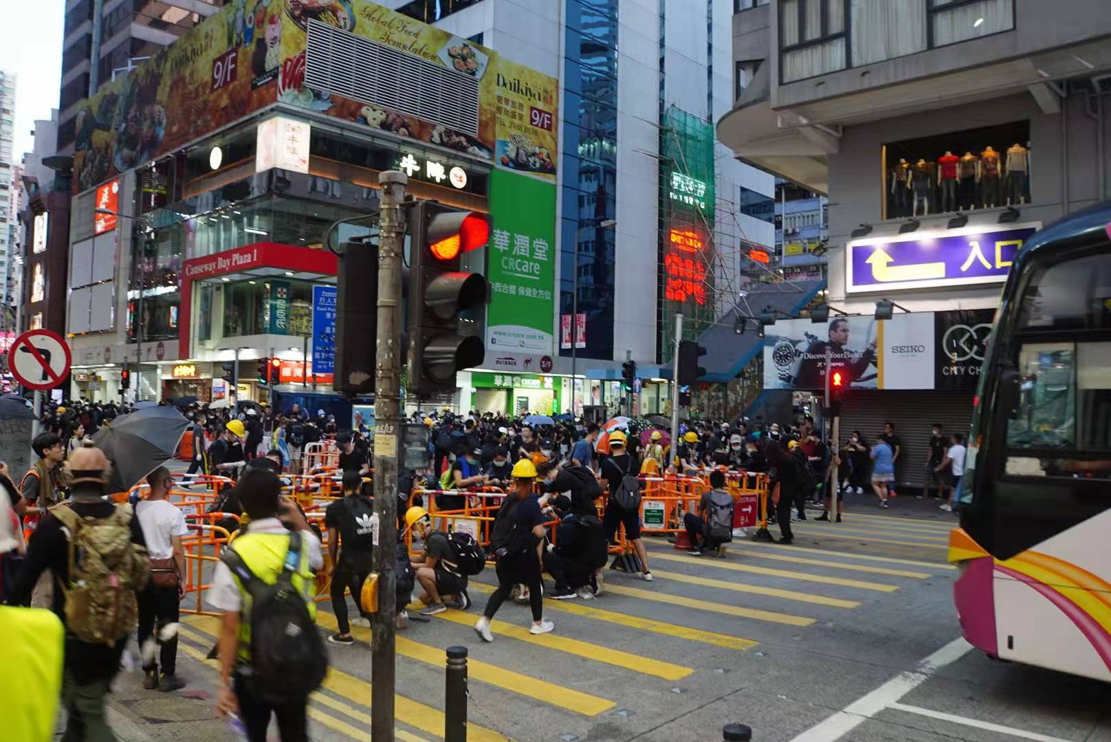【19:00】示威者再次於銅鑼灣波斯富街集結,設置路障。