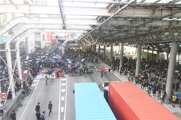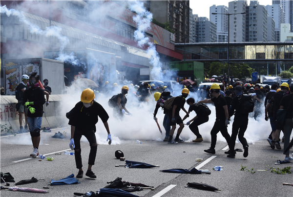 【香港商報网訊】記者萬家成報道:鼓吹罷工的七區集會,演變成全港性騷亂!港九新界昨日硝煙四起,暴徒四處流竄,在多個地區大肆堵路、破壞及縱火,更囂張地攻擊多個地區的警署,接二連三與趕至的防暴警察發生衝突,由下午至晚上未有停止,多個戰場磚頭和催淚彈交錯四射,雙方各有損傷。深夜11時前,一批黑衣人又「快閃」佔據紅隧九龍出入口;另一批人又湧到銅鑼灣鬧市堵路。至今日凌晨時分,仍有多區騷亂未平息。警方嚴厲譴責示威者行徑令人髮指,強調會追究到底。