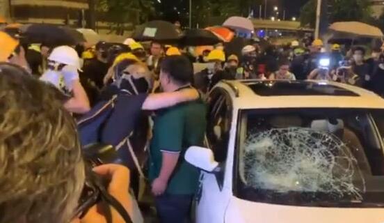 期间,私家车主不断对暴徒喊道:“你们为什么要这样做?我支持民主。你们为什么不能和平点?”