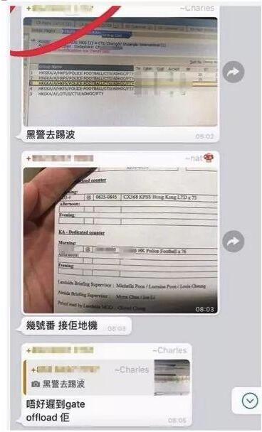 其中一位爆料人士讲述,遭到国泰航空公司人员泄露的,是已经于昨天抵达成都参加第十八届“世界警察和消防员运动会”的香港部分警队人员的航班行程信息,泄露的网络平台疑为境外社交软件Whatsapp。