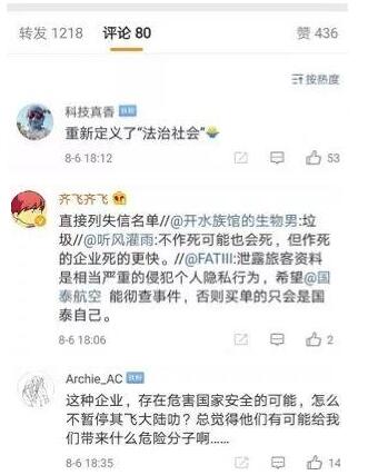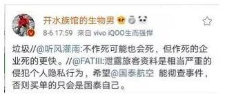 此事也很快引起了不少内地网民的震惊和愤怒,其中有航空博主就表示泄露旅客资料是香港严重的侵犯个人隐私行为,要求国泰航空彻查。