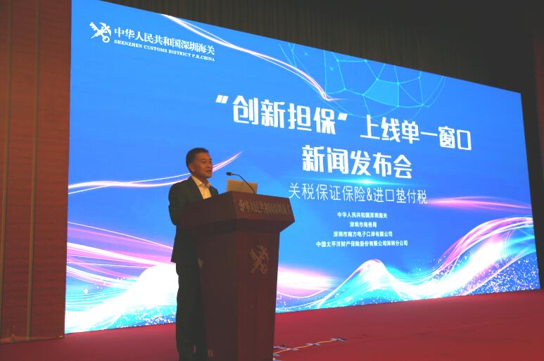 【香港商報訊】記者徐艷瓊報道: 8月6日,在深圳海關、深圳市商務局的大力支持下,太平洋產險深圳分公司聯合深圳市南方電子口岸有限公司在深圳海關大廈聯合舉行了“創新擔保”上線單一窗口新聞發布會,推出企業線上投保“關稅保證保險”業務,這標志著太平洋產險深圳分公司成為全國首家擁有線上投保關稅保證保險系統的保險公司。