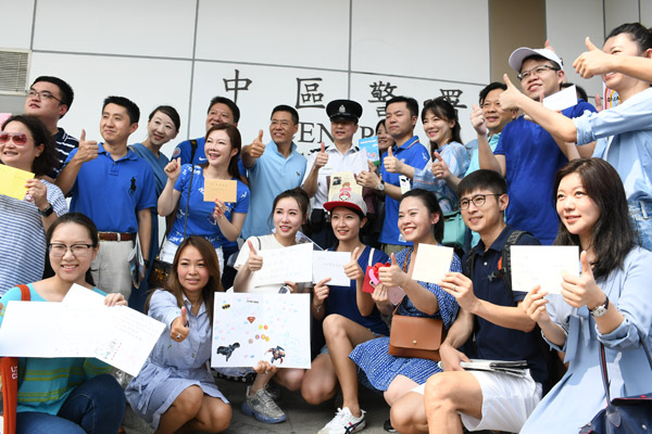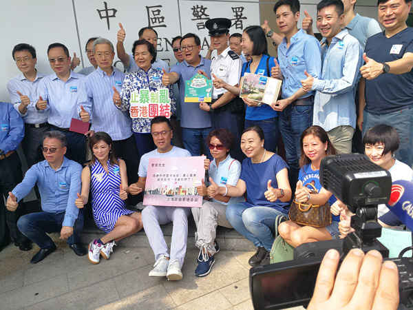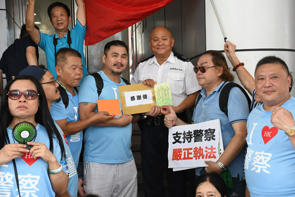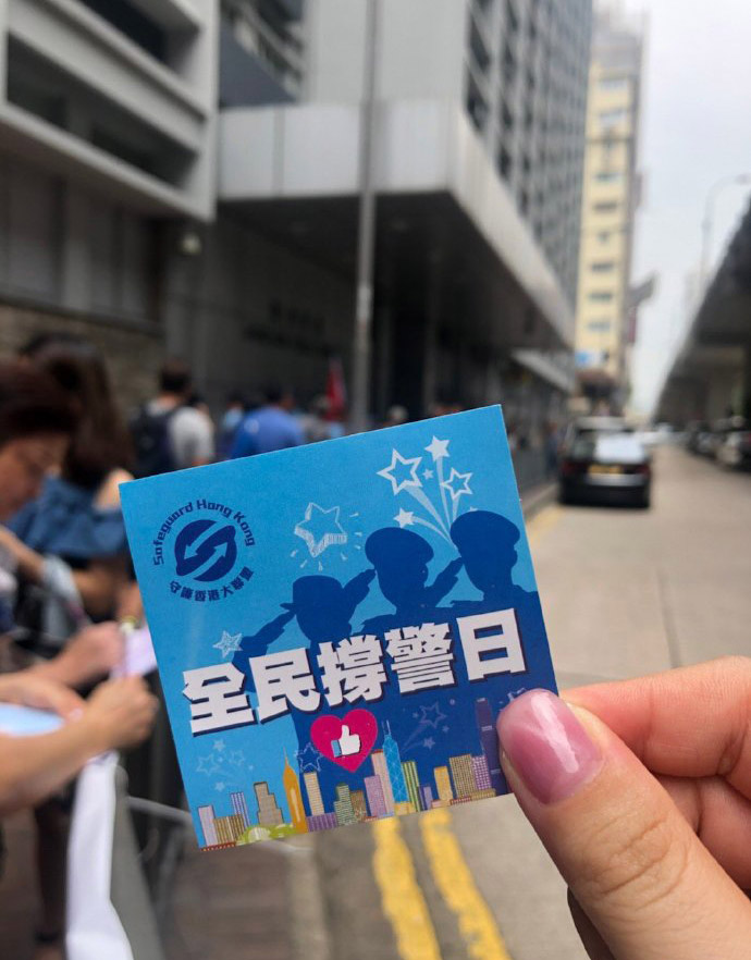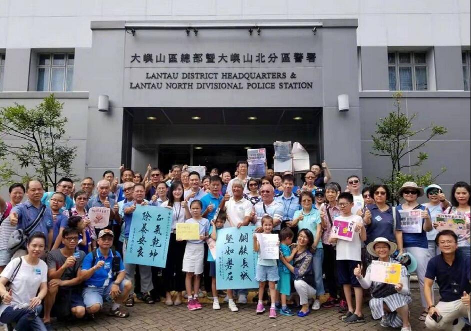 【香港商報網訊】「守護香港大聯盟」發起「全民撐警日」活動,市民自發組織去旺角警署、觀塘警署、北角警署、葵湧警署等數十個警署向警察表示感謝,感謝香港警察過去兩個月異常艱辛的執法,以肉身抵擋蒙面暴徒的磚頭、鐵枝、腐蝕化學劑、鐵珠、致盲性激光等的生命威脅,家人亦受到威脅,但這些都無阻他們履行守衛香港,守護市民的使命。