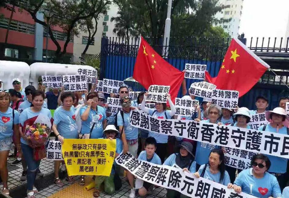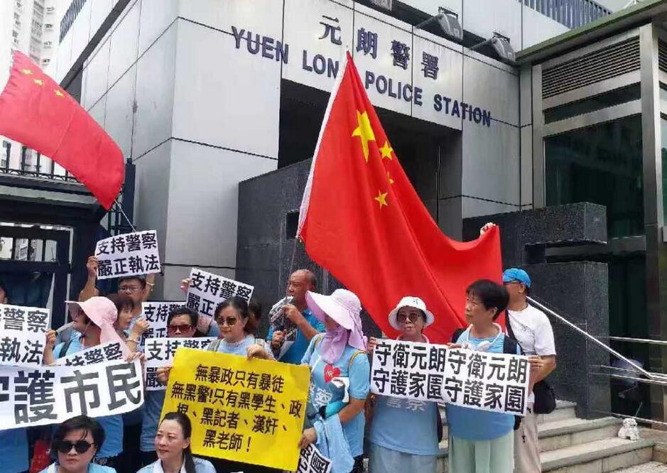 香港元朗警署外已經聚集了很多市民,大家擺出橫幅和支持港警的標語。