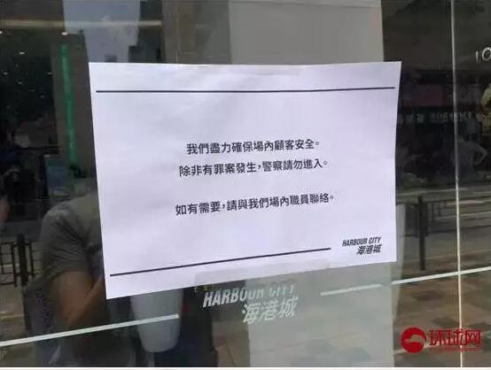 这气,让人想起没护好国旗的香港海港城,在店内张贴那张“警察请勿进入”告示: