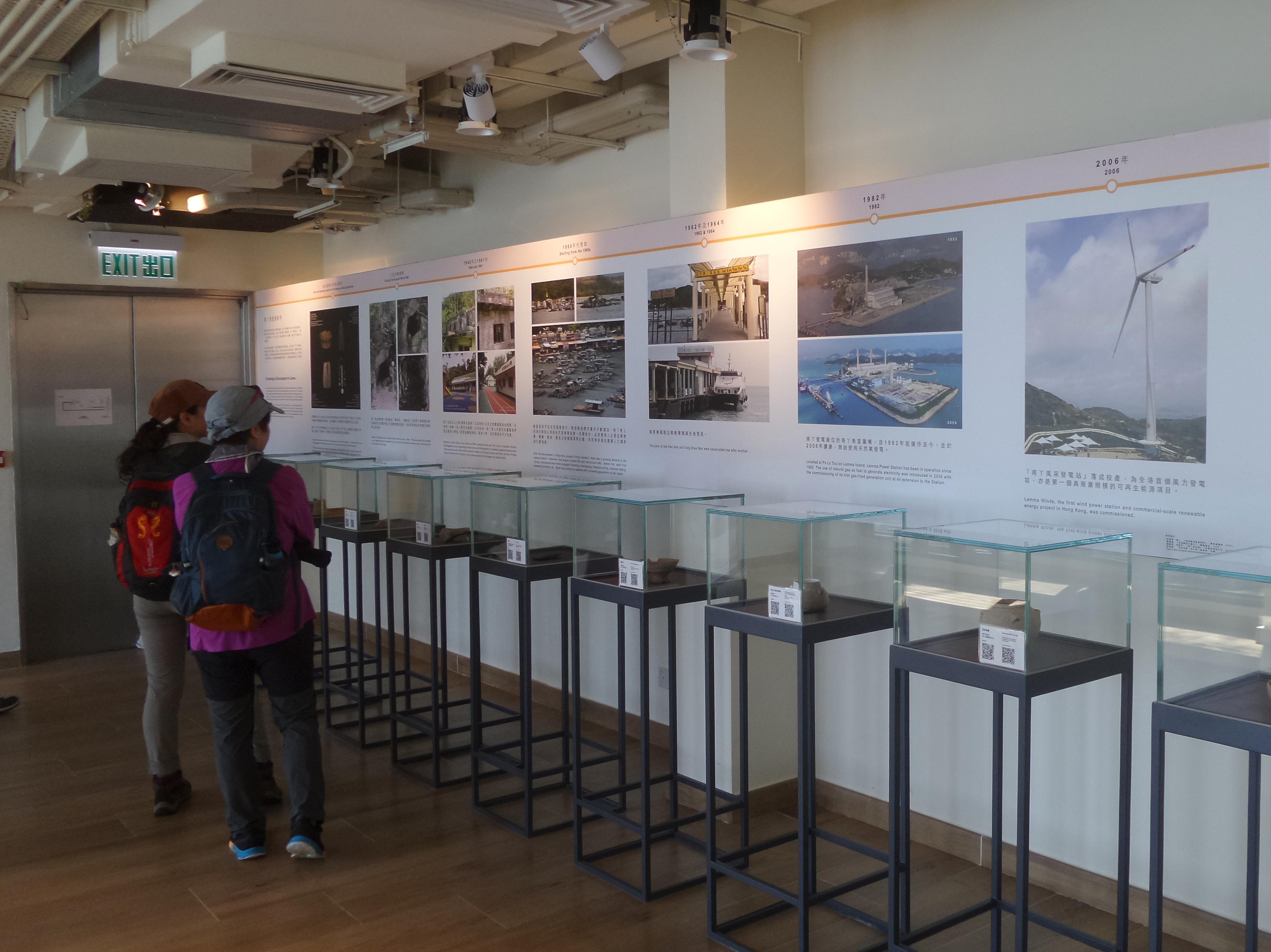 歷史文物室內展出有關南丫島歷史文化和居民生活變遷的影片和文物,吸引市民駐足觀看。