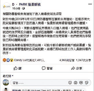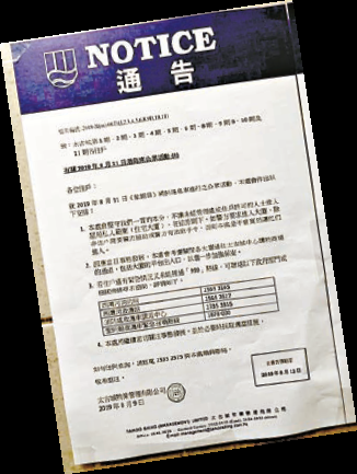另外,亂港派原擬發起昨日港島東遊行,網傳太古城、西灣河太安樓等屋苑均張貼告示,稱除非住戶需警方協助或警方有法庭手令,否則管理處不會貿然讓警方進入。