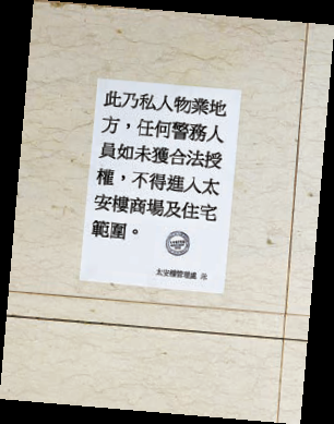 太古城物業管理公司回覆查詢稱,公司是應業主要求列明就未經許可人士及警方進入大廈時的安排,告示只供住戶參閱。稱「在緊急情況下、或有人致電999報警,管理公司會協助警方執行職務。」太安樓管理處接受查詢時確認有貼出相關告示,但問及是業主要求或管理處自行決定張貼有關告示,職員聲稱正在忙,並掛斷電話。