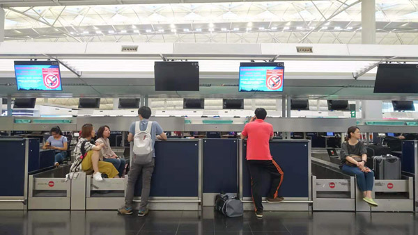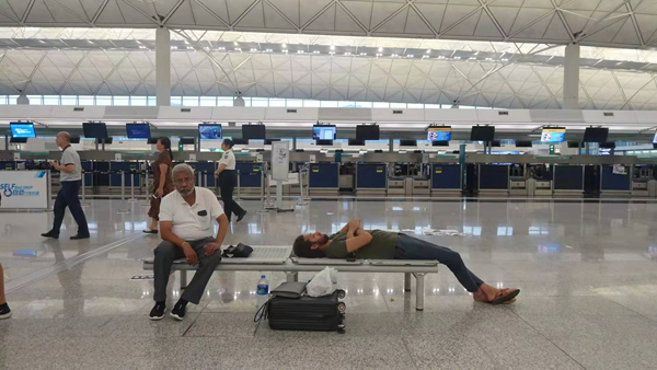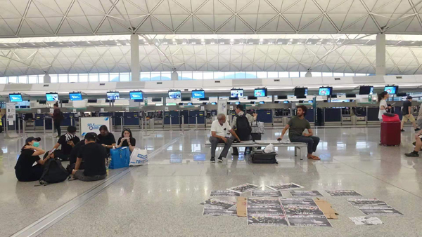 非法集會致所有航班取消,旅客大感無奈。記者 木子攝