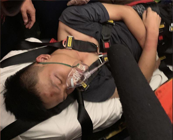 至晚9時,有救護員到場,但黑衣人不准救護員帶他走。