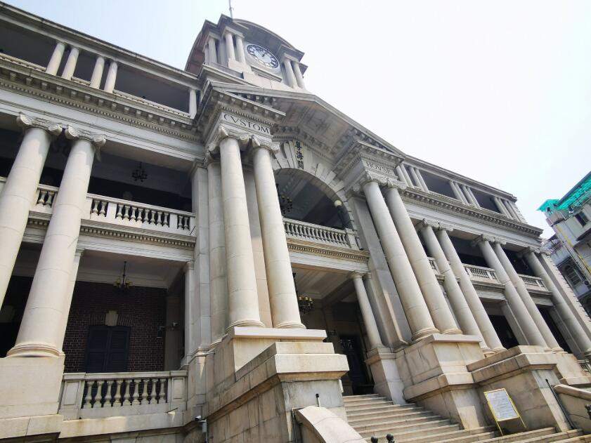 “大鐘樓”建成于1916年,由海關總稅務司署工程處建筑師戴維德·迪克( David C. Dick)設計,體現新古典主義古羅馬式建筑風格。大樓坐北向南,共四層,連鐘樓總高31. 85 米,總建筑面積3292.72平方米,耗資21萬銀兩。巴洛克風格的鐘樓,放置大型四面機械時鐘,內有5 個大小不一的吊鐘,為1915年英國制造的全機械傳動式立鐘。百年鐘樓見證了中國海關從民國到新中國成立的發展歷程,具有重要的歷史研究價值。