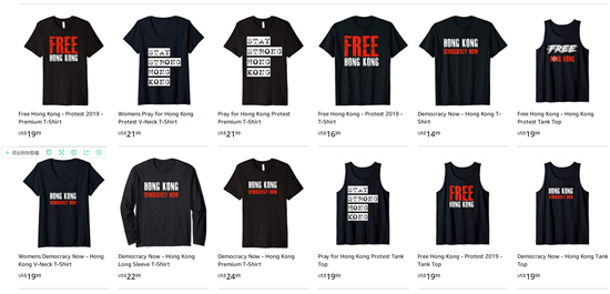 然而,截至發稿,“港獨”T恤仍在亞馬遜網站上展示銷售,亞馬遜方面也未對此做出任何回應。
