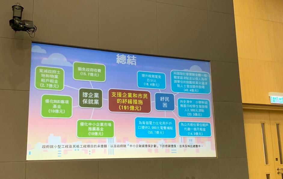 其他幫助企業的措施有為政府用地減租半年、注資予為中小企而設的兩個基金,以及對失業及就業不足人士提供資助。
