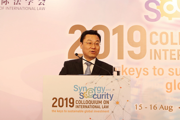 外交部駐港公署特派員謝鋒昨日在「2019香港國際法論壇」開幕式上發表主旨演講。外交公署網站圖片