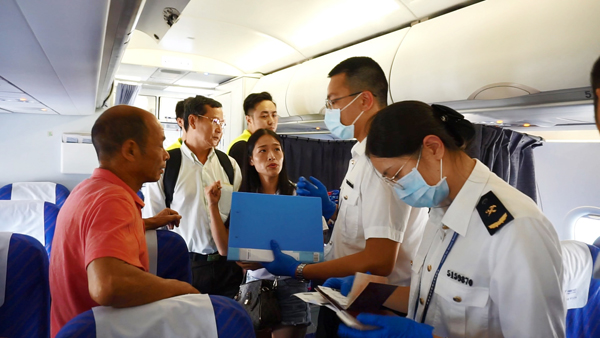 當日16時許,隨著旅客搭乘的CZ8314航班從柬埔寨金邊飛抵廣州白雲國際機場T2航站樓,早已守候在停機坪的海關關員迅速登機,在醫務人員使用擔架和可升降的廂式無障礙登機車將該名旅客運送下機的同時,迅速實施醫學排查和行李物品監管。