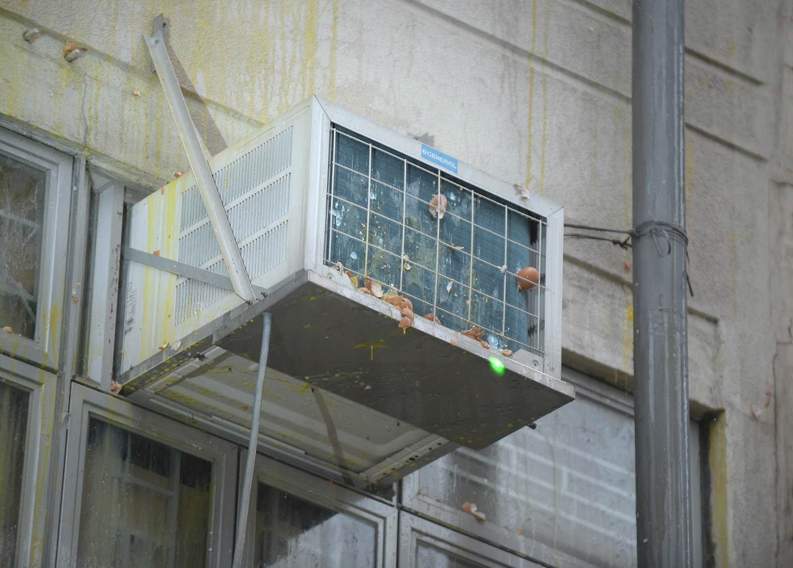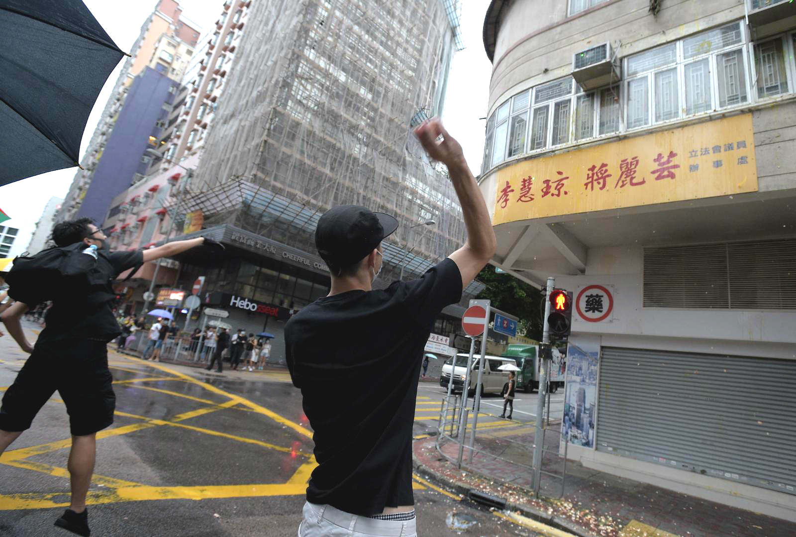 示威者向民建聯辦事處投擲雞蛋。圖:星島