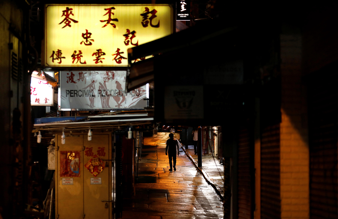 昨晚銅鑼灣一條小巷中的餛飩館因示威遊行而不得不關門謝客。路透社
