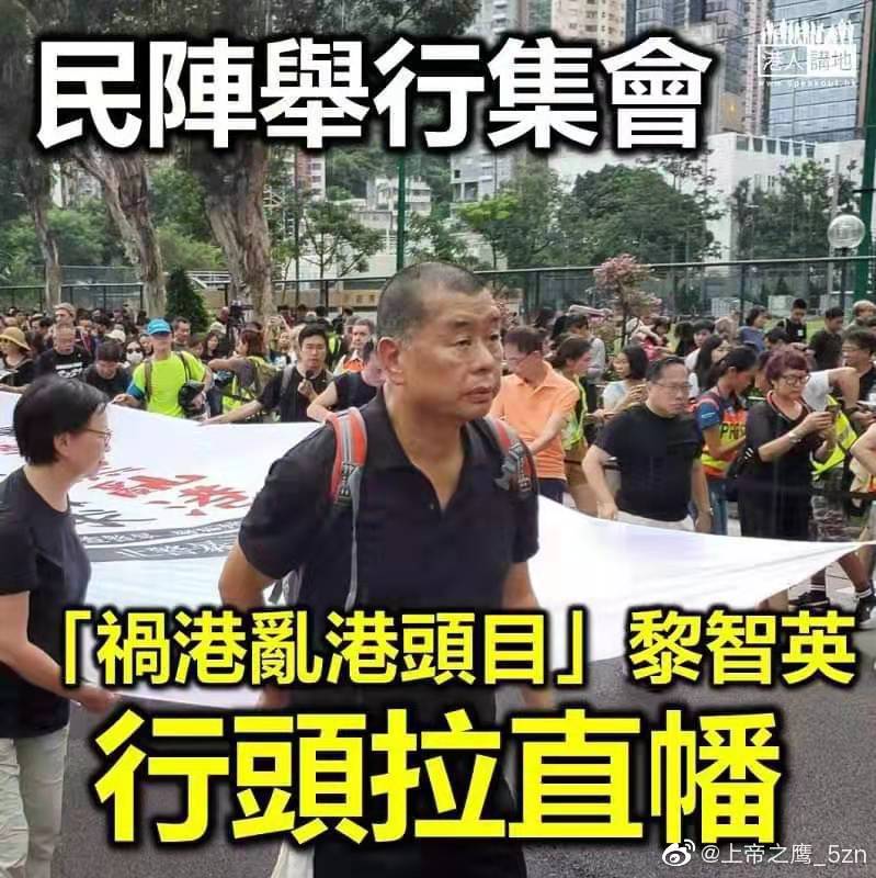 民陣昨午在維園舉行「流水式」反修例集會下午2時開始,人群聚集在足球場,部分示威者更站出中央草坪。下午3時首批參加集會的示威者離開維園行出高士威道,沿馬路西行線向銅鑼灣方向前進。其中,壹傳媒創辦人黎智英、民主黨創黨主席李柱銘、天主教區榮休主教陳日君、工黨副主席李卓人及民主黨前主席何俊仁等反對派核心人物一同現身維園集會,黎智英更牽頭帶隊步出維園,有如指揮者,帶領示威者非法佔路遊行,不時高聲「行快點」、「唔好阻住」等。