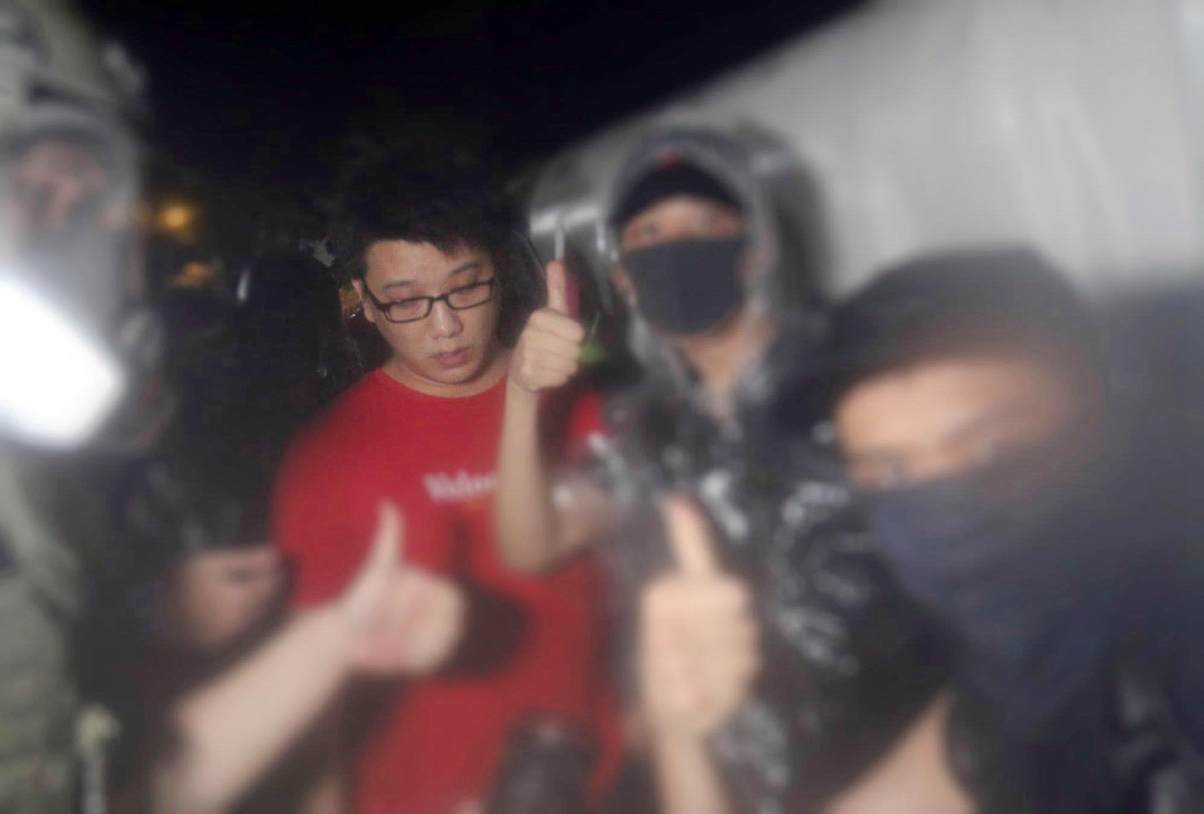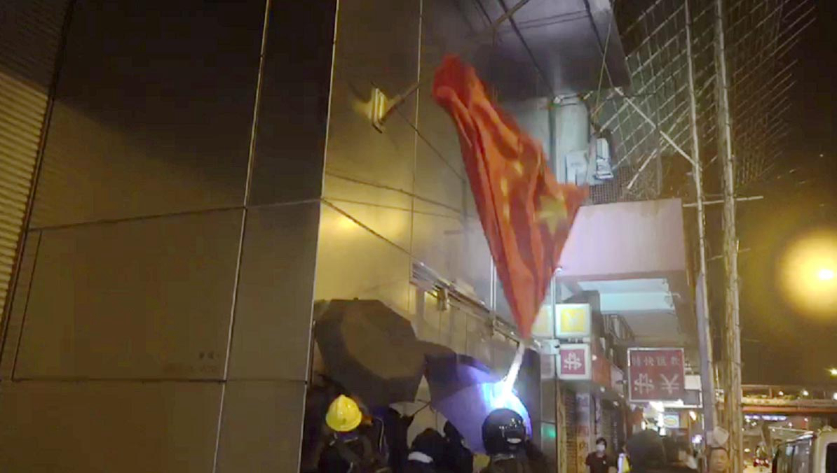 18日晚,有黑衣暴徒破壞懸掛在粵海大廈的國旗。