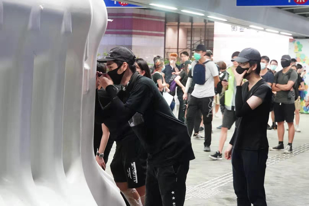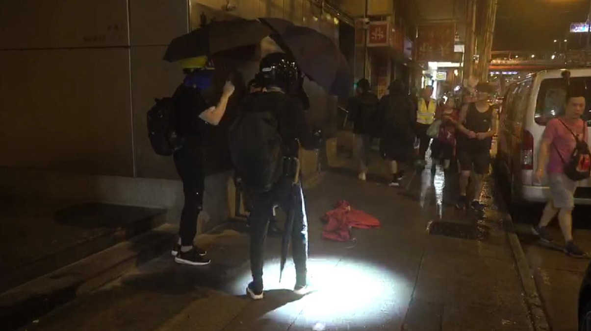 至晚上8時許,在金鐘力寶中心外有一名身穿紅衣的內地男子被指拍攝在場人士的樣貌,一度被人包圍,他報稱是來自上海的旅客,該名男子其後由在場的醫護義工護送下,到金鐘站坐港鐵離開。差不多同一時間,在上環干諾道中148號粵海投資大廈門外,有數名示威者突然把大廈外牆的國旗拆下丟到地上,然後四散離去。