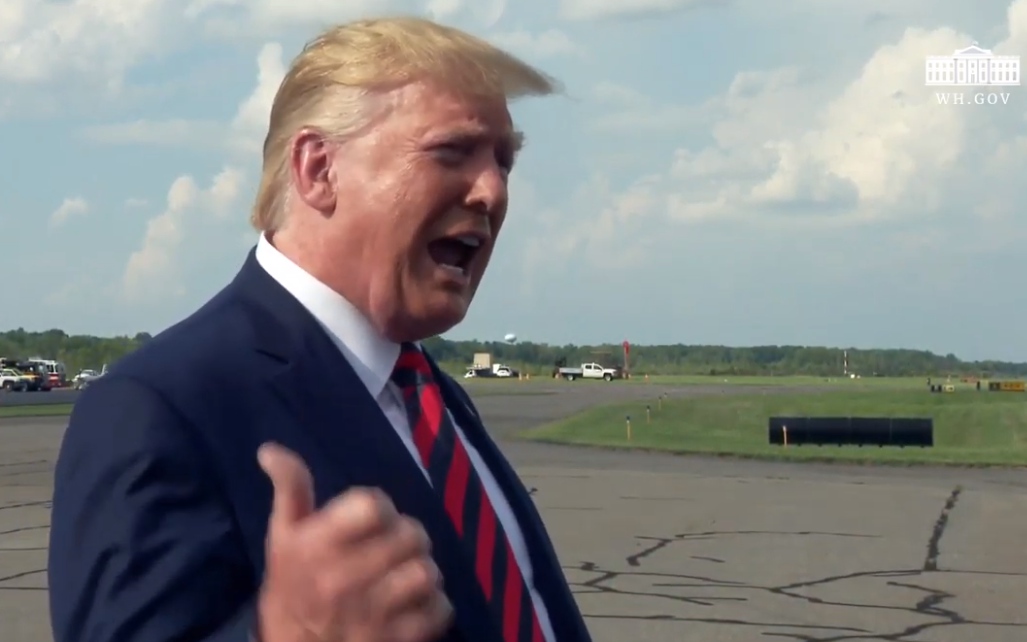 特朗普在離開新澤西之前回答記者提問 白宮視頻截圖