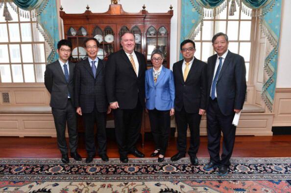 图为李柱铭(左二)向蓬佩奥“述职”。圖:羅冠聰fb