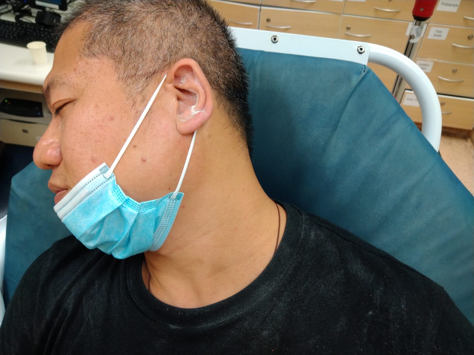梁金成臉部被撤白色粉末。圖:星島