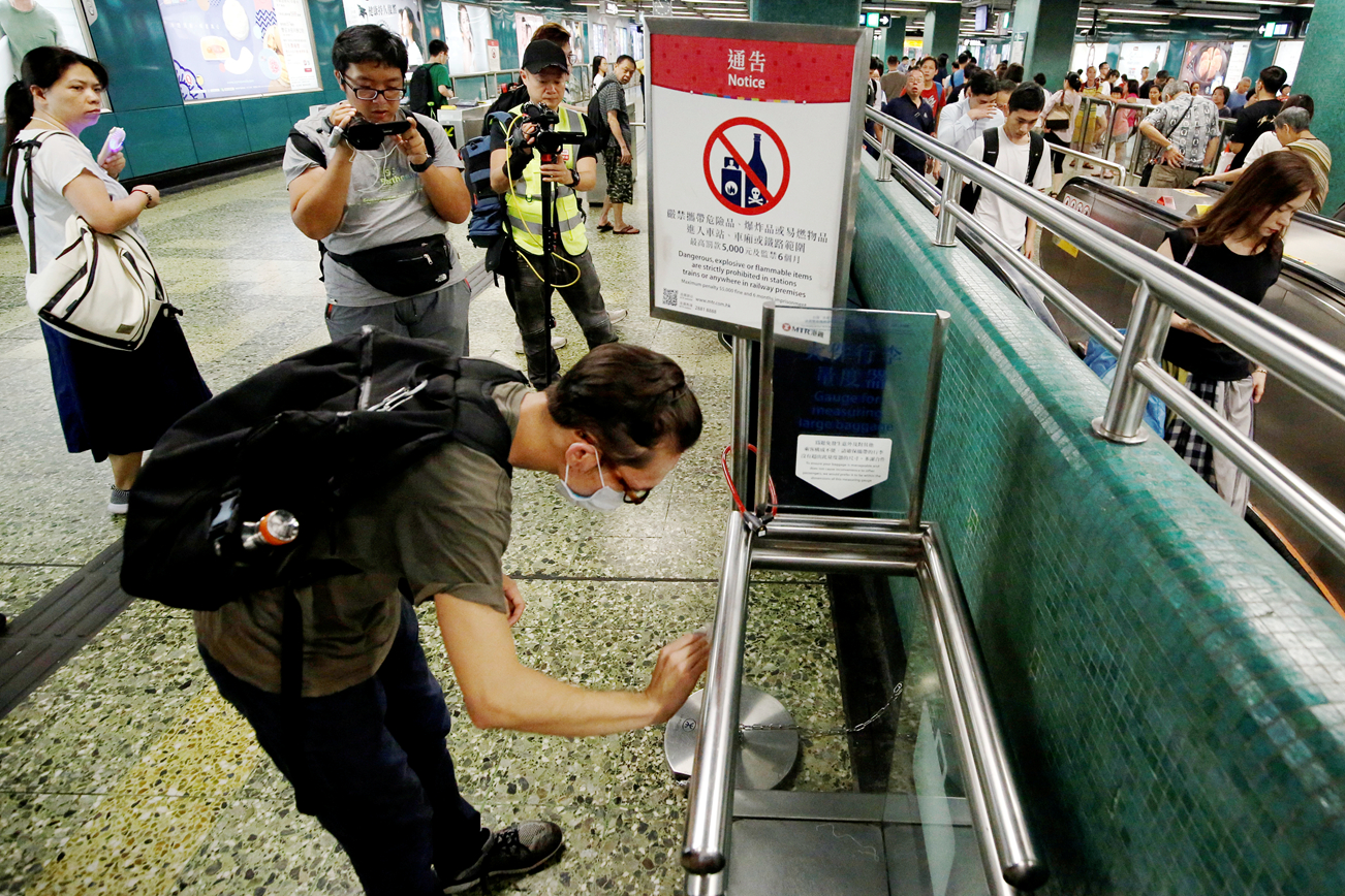 有市民自發清潔受催淚彈影響的港鐵站。路透社